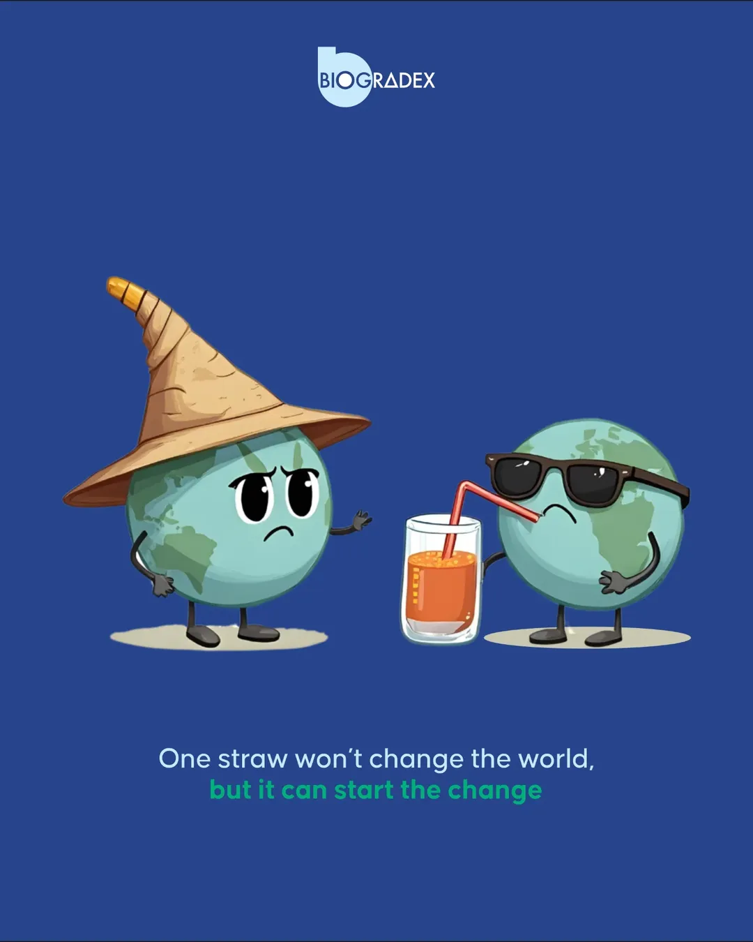 Every day, millions of plastic straws are used once and tossed — ending up in landfills, oceans, and even inside marine animals. At BIOGRADEX, we believe that something as small as a straw can start something big: a movement toward a cleaner, greener future.